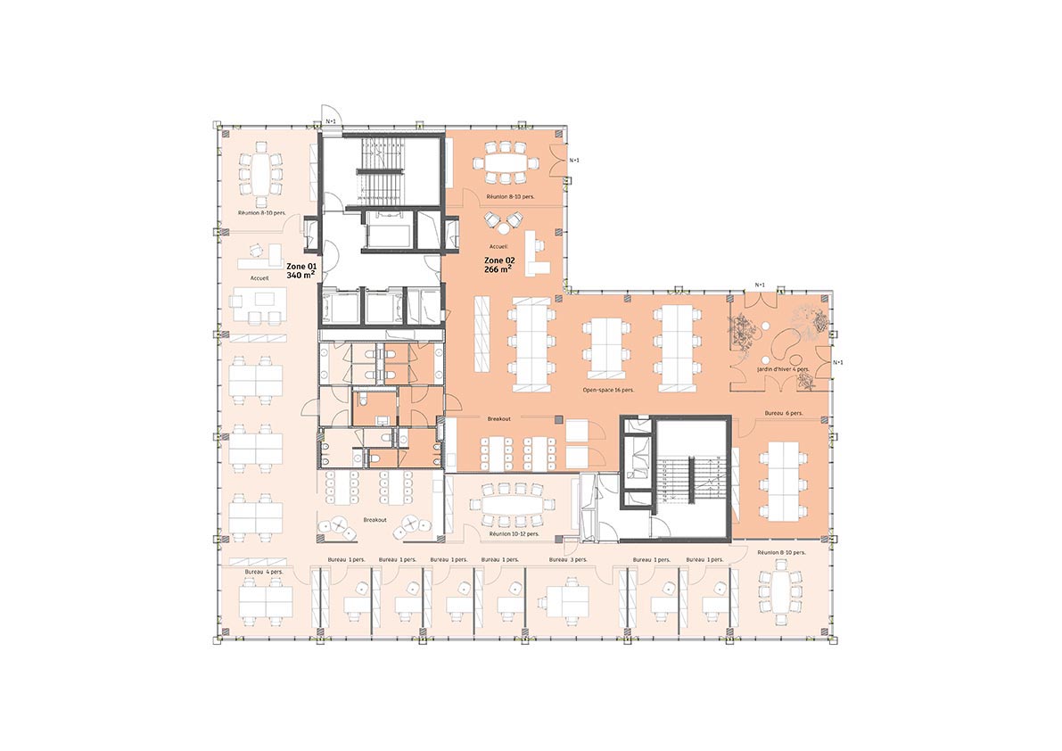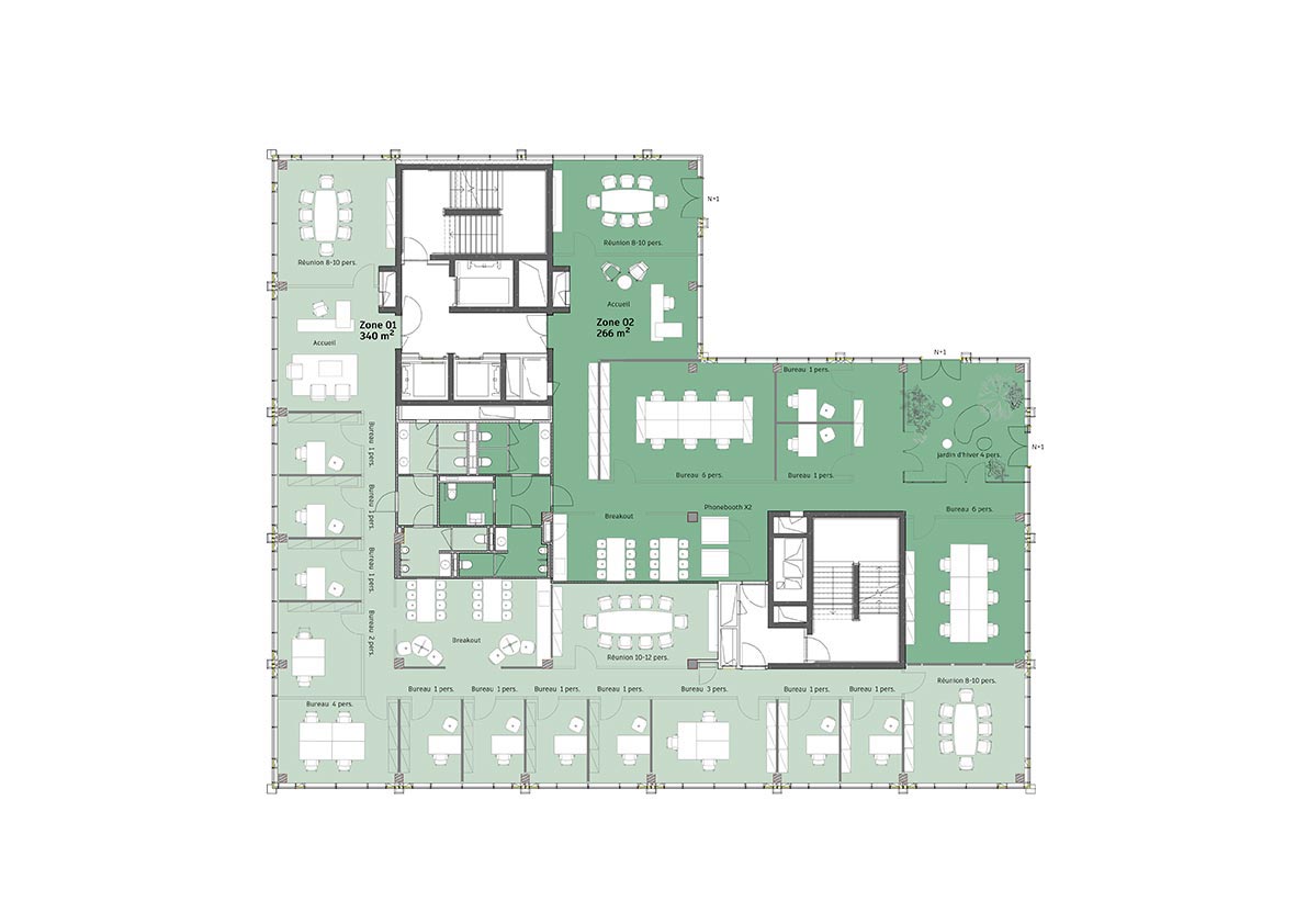 Et parce qu’il faut aussi du calme, les espaces de travail sont pensés pour disposer d’un grand confort acoustique et hygrométrique grâce notamment à l’utilisation du bois.